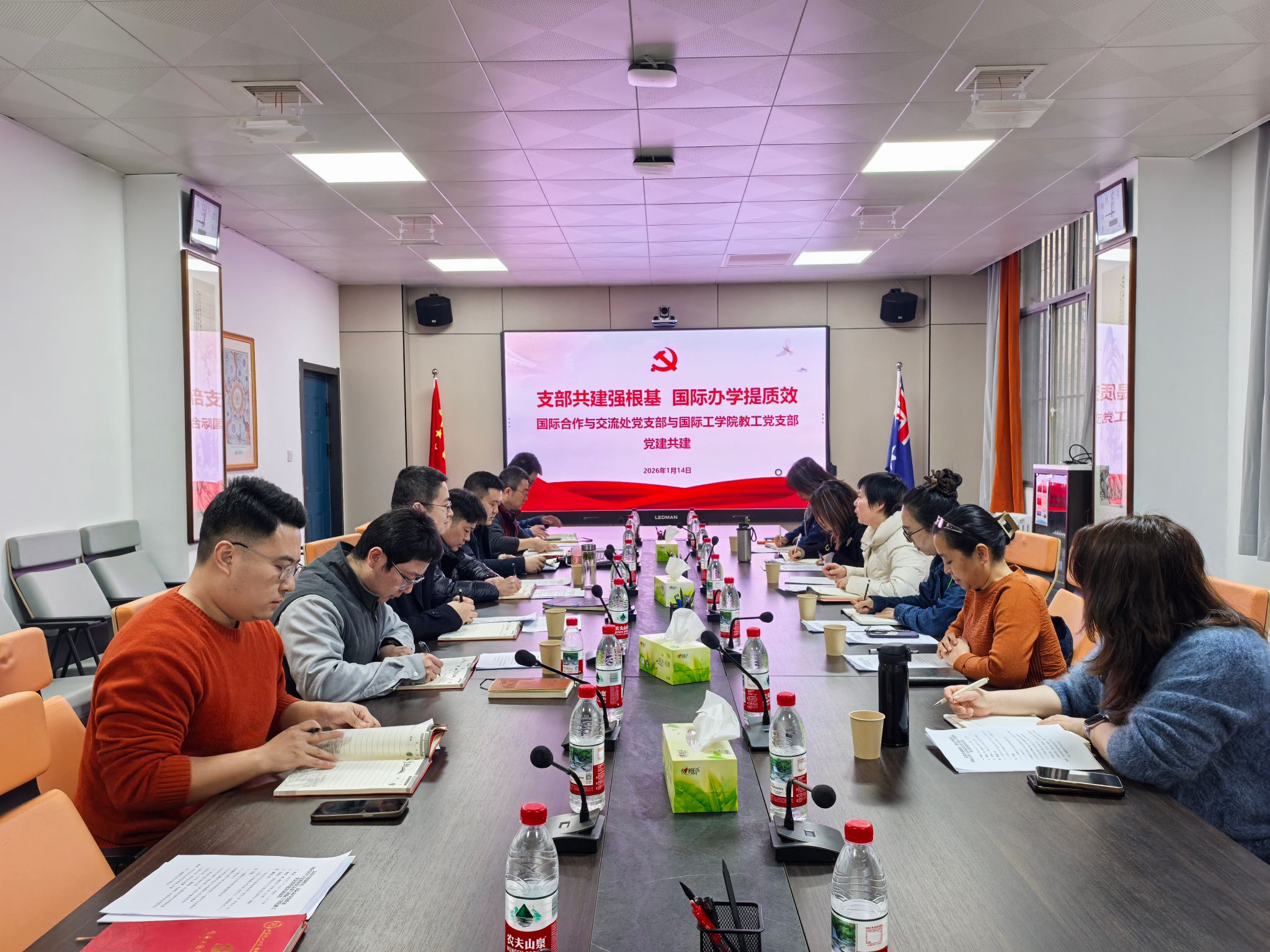 为深入学习贯彻党的二十届四中全会精神,深化党建与业务工作深度融合,凝聚国际化办学发展合力,1月14日上午,国际合作与交流处党支部与bv伟德源自英国始于1946教工党支部在教三楼207会议室开展支部共建活动。活动由国际合作与交流处党支部书记杨媛主持。
