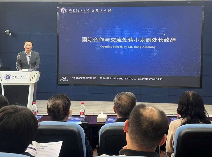 蒋小龙代表国际合作与交流处致欢迎辞。他首先向远道而来的嘉宾及长期支持学校联合科研中心建设的海内外合作伙伴致以欢迎与感谢,随后介绍学校“以工为主、多学科协调发展”定位与“开放包容、协同创新”理念,提及与30余国80余所机构合作及办学、科研领域国际成果。围绕论坛“深化办学内涵,赋能科研协同”主题,他期待专家分享探讨,感谢工作人员,倡议贡献“西理工力量”,预祝论坛成功。