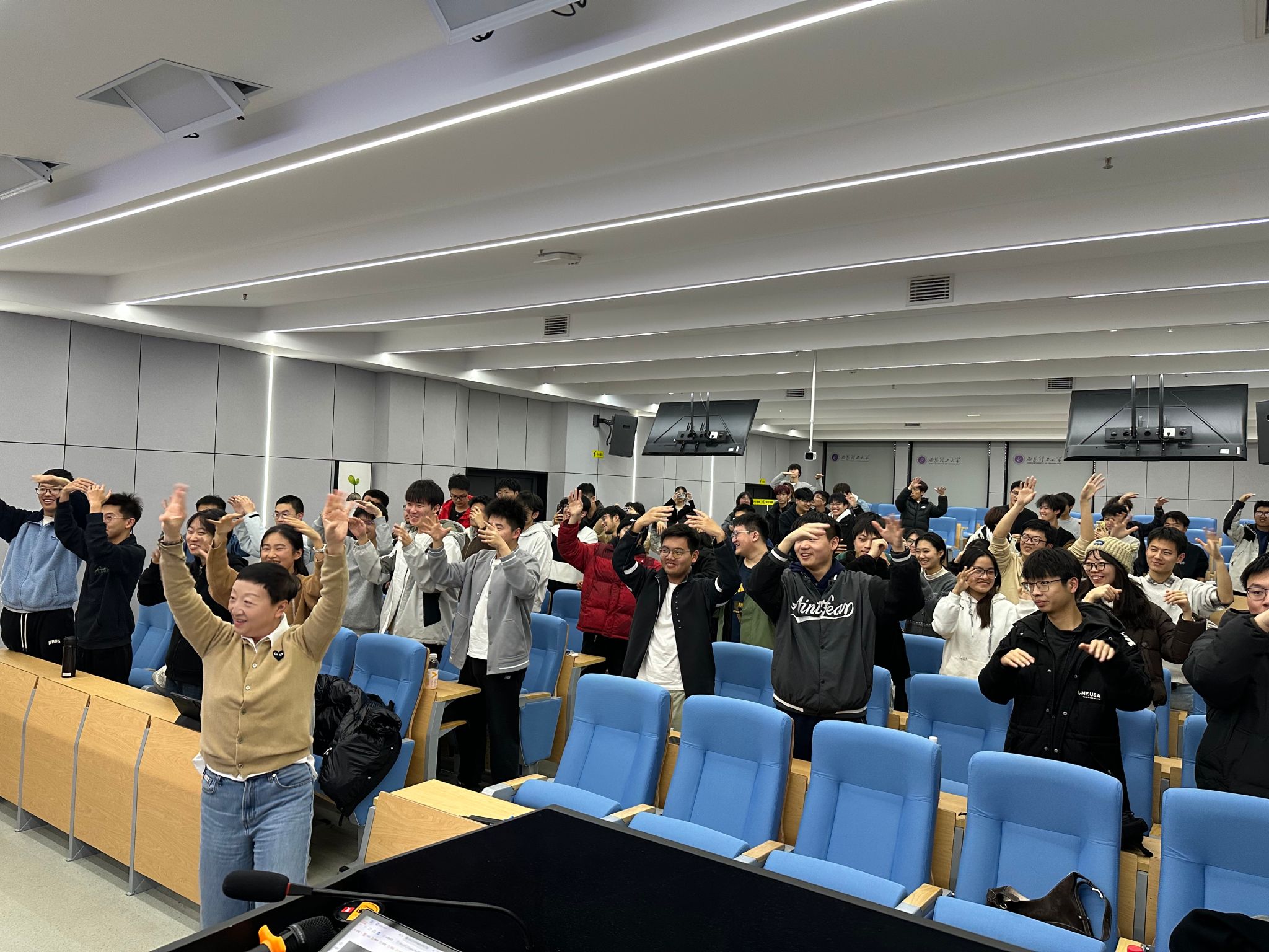 培训伊始,李进老师讲到,心理工作不仅是解决问题,更需要以温暖的联结开启对话。希望今天的交流能让大家既掌握专业方法,更保有共情力量。随后李老师以一段轻快的互动音乐引导在场学生起身共舞,在轻松愉悦的氛围中拉开了培训序幕。